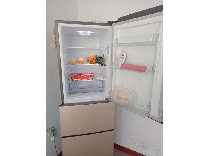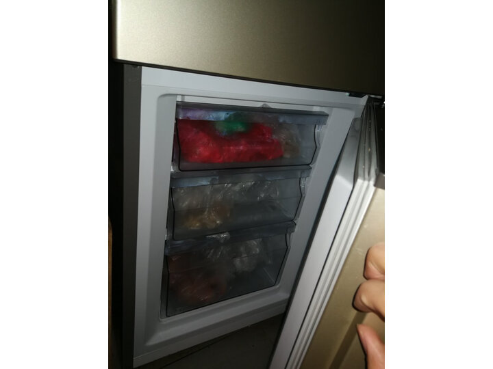 容声冰箱做工精细!制冷迅速!保鲜时间长!外形外观:大小正好,挺好的。容量大小:容量挺大的,冷冻三个抽屉,够用了外形外观:金色的颜色挺高级,不错哦。制冷效果:三层制冷,挺方便。主要看中容声大牌子,东西比什么海尔卡萨帝看着实在,不打广告,公司买了几台都没问题,就决定家里整一台了。而且整体的价格非常得实惠,人家两厢的价格容声能买个三厢的冰箱,非常好果。容量挺大的,能放很多东西,保鲜制冷也很好。