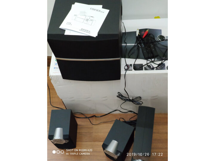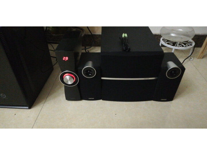 包装完好无损,低音效果很棒,做工完美,大品牌质量值得信赖!外形外观:好其他特色:好做工质感:好音质音效:好安装难易:简单外形外观:有点太大了,线材放起来比较乱,不建议小桌子购买。音质杠杠的,低端漫步者 没毛病。外形外观:外观高端大气做工质感:木质做工,感觉很稳重音质音效:低音清晰,高音分明