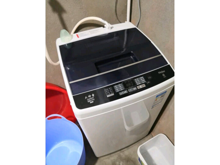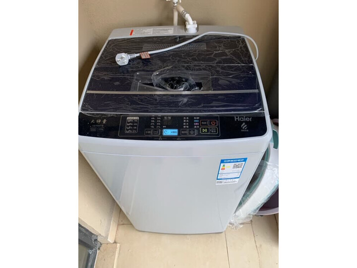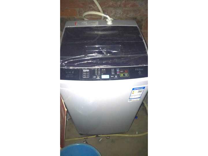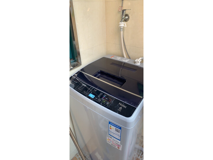 还没有拆开,小区不让进,我自己大门口搬进来的外形外观:外观不错,液晶版面其实可以更简洁些。安装小哥很给力,分分钟装好了。运转起来试了试,感觉动力十足。等正常开始使用后,再来追价~海尔是一直信赖的品牌,家中一直在使用,这次买来是在学校宿舍使用。外观简约大方,节约空间,内容量很大,智能双水位,洁净省水,清洁效果好,而且残留少。衣服洗的很干净,脱水后也很平整,操作简单,省时省力,噪音也不大,挺满意的。其实8.5那个更好,奈何没货这个感觉一般不理想