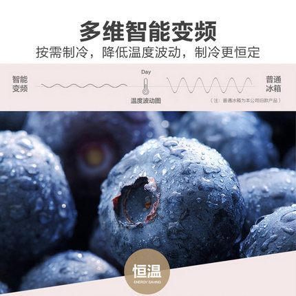 外形外观:外观非常简洁,色彩极富力量感,时尚大气。制冷效果:风冷循环,降温速度快,效果好,而且电机声音不大。保鲜效果:冰箱变温区体积较大,适合放需要保鲜的各种食材。容量大小:大容积,再也不用为东西放不下而烦恼了。