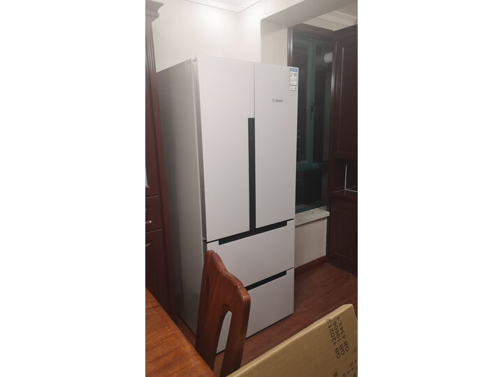 送货师傅很不容易,一个人搬一个几百斤的冰箱,就不能多配个人手吗?看着也帮不上忙觉得很辛苦啊!冰箱不错,高高大大的,适合小户型又想要大冰箱的,家里客厅放不下双开门的,就买了这款,博世的东西比较可靠,家里洗衣机都是博世的。价钱也很合适,还能用节能补贴,非常好!一直很钟意博世电器,洗衣机也买的是这个,起初挑选冰箱时看了好多款,最后选了这款,刚好618做活动很划算就买了,玻璃面板很好,是那种灰白的颜色,不过也很耐看了,送货安装都很满意,用了一个多月了,感觉很好,噪音也还好能接受,空间很大,触控屏幕调节也很方便,很满意