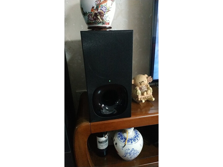此外,在外观方面的话,单个音响的三围是219X315X352mm,主箱体的净重为8.8kg,副箱的净重为7.0kg,我个人的感觉是这样的尺寸大小合适,挪动也很方便,用户可以自由地在家中摆放。