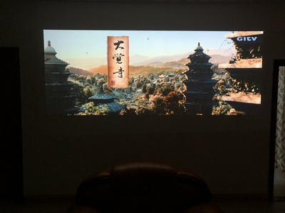 前兩張是白天拍的。 發貨隔天到貨。白天拉窗簾,晚上效果更佳。 安裝調試也很簡單,10分鐘搞定享受家庭影院的效果!! 色彩飽滿,哈曼卡頓音響效果也提升了。