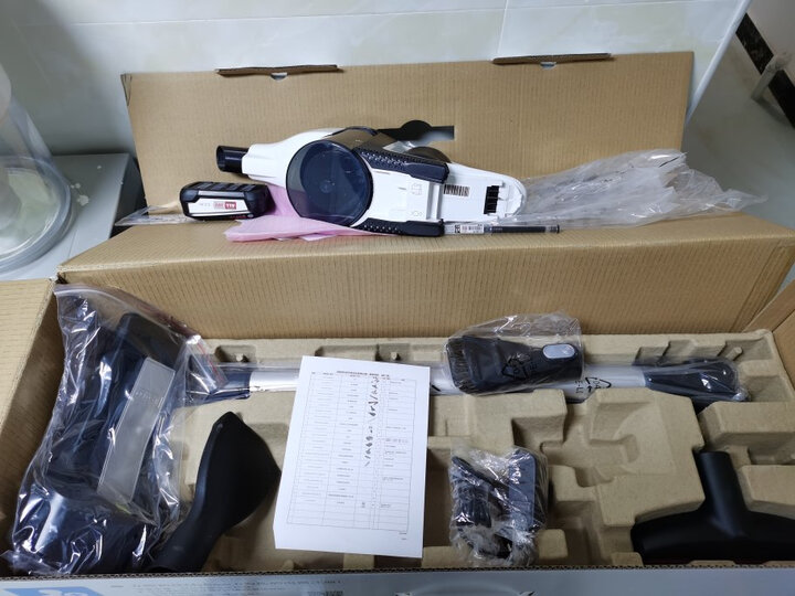 打开外包装,我们可以看到,上部包装为软泡沫衬垫,四角凹槽分别配有4个万向轮,中间部分装有产品说明书配件等。
