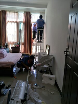 空调是比较满意的,包括送货时间,预约安装一天搞定。可惜,多花了买管子的费用是小事,安装师傅如果穿鞋套工作就比较好一点,毕竟木地板。师傅说我家柜子里面通不过空调管,把厨房天花板也割破了,有点后悔买,毕竟太废周章了,弄好了空调坏了天花板有点不值当。唉,说不出的感受