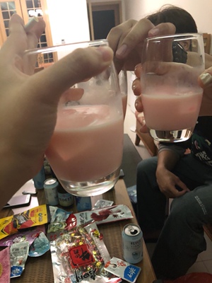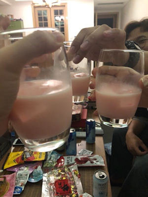 颜值很高! 味道就是草莓牛奶的味道 酒味闻起来有点大 微微辣比江小白好一点 推荐喝法 草莓芝士加恶魔甜心 超级好喝