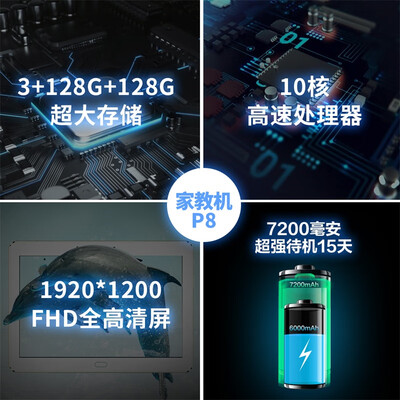商品名称:快易典KYD-P8; 商品编号:100005961807; 商品毛重:1.185kg; 商品产地:中国大陆; 屏幕尺寸:10.1英寸; 适用人群:学龄前,小学,初中,高中; 类型:学习机; 附加功能:支持播放MP4视频,支持扩展存储卡,支持播放MP3音频,真人发音,支持TXT、PDF格式电子书阅读,支持屏幕手写,摄像头功能,拍照学习; 电池容量:6000-7000mAh; 内核:十核; 数据接口:Type-C;