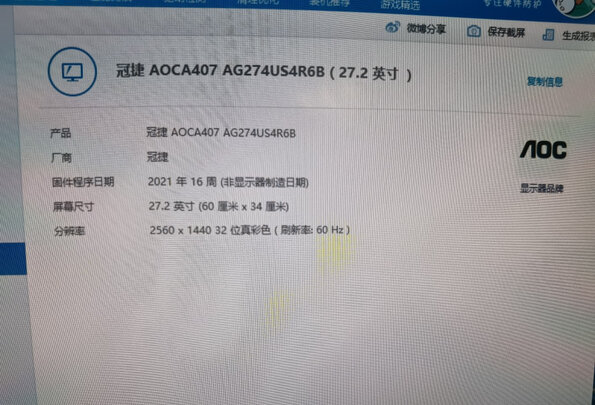 aocag274uxp显示器(aoc显示器怎么调) |