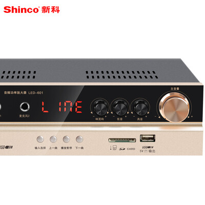 新科LED-601A怎么样?值得入手吗?这款新科(Shico)LED-601A 家庭影院功放机 家用蓝牙HIFI定阻功放(金色)还蛮满意的咯,做工用料蛮足的,样式也很不错的十分上档次,不少的人想要了解这个新科LED-601A究竟怎样,真的可以吗,实实在在的说这款新科LED-601A真的是牌子货,质量还算好的,才购买不久的,小巧玲珑,好看又实惠!音响效果不错,用在店铺里确实非常棒!会给朋友推荐的!