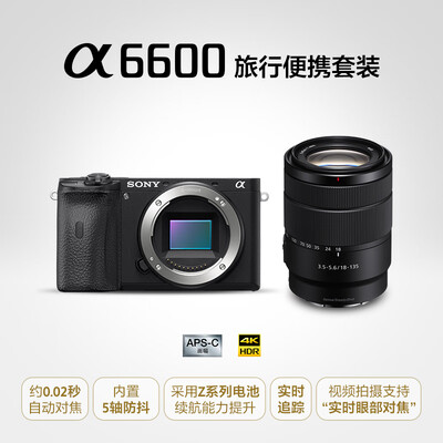 商品名称:索尼Alpha 6600; 商品编号:100008535036; 商品毛重:1.21kg; 商品产地:中国; 分类:中高级; 类型:单镜头套装; 传感器尺寸:APS-C画幅; 像素:2001-4000万; 滤镜直径:55mm; 用途:人物摄影,风光摄影,运动抓拍; 功能:5轴防抖,4K视频,高速连拍,WIFI连接,翻转自拍; 颜色:黑;