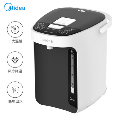很不错,外观漂亮,功能齐全,烧水速度也很快,多重温度选择,适合各种要求,真心推荐!很好用,还给家人又买了一个,主要是调的温度正好可以给宝宝冲奶粉,不用等。很快收到货,内胆大,烧水可以保持恒温了,非常奈斯。.容量大小:5升够用外观材质:质朴烧水速度:很快保温预约:方便清洗难易:由于用纯净水还没清洗过其他特色:物有所值,断电下电池驱动出水很方便,出门在外也可以有热水喝了一直想买个电热水瓶,恰逢美的新品上市抢购,果断入手一台。从盒子的外包装就看出来很讲究,机身黑白配很经典。拆开就接上了水,试一下。烧开水的时间大概需要25分钟,用奶瓶测试150和250ml的出水量准不准,基本上准确,能偏多一点,当然只试了三四次而已。在等待看降温到45度需要的时间,先给一个大大的好评。下单还送了一个随行杯,正好也是需要买的东西,真是太赞了。这个热水壶外观挺好看,容量也不错,只是出水的时候每次要感应好几遍才能感应到,我觉得没有按压键好用容量大小:5L的容量对我家这种爱喝水的稍微有点儿少,但是这也避免了喝循环水,也行。外观材质:外观跟图片一样,也是我选了很久的,也是看颜值选的这款烧水速度:刚开始不会用,研究了半天,会用之后感觉烧水速度以及降温速度都很快,不大一会儿就有温水喝了其他特色:价格不菲,但是好用就行质量很好,等价钱一等货。