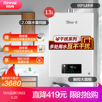 林内老牌子,值得信赖!之前家里买过好几台林内的热水器了!送货非常快,原先说要七月十号以后才发货,等了几天就送到了,等安装完毕后再追评!外形外观:外观很漂亮的,发货速度很快,联系安装后第二天就上门安装了,师傅技术挺熟练的,使用效果也不错,?618乘着搞活动买的,性价比挺高。家里一直就用的林内的热水器,之前那个用了快有17年了,几乎没出过任何故障,对林内的认可度很高。新换的这个今天来师傅安装了,质感很好,装完之后试用了一下加热出水都挺快挺顺畅。师傅态度也好,认真讲明白不能现在用软管了。林内的产品很不错,特别是循环水泵,特别小巧,安装师傅也很负责任,装上的效果非常好!就等接通煤气使用了!.外形外观:外形外观:漂亮大气,物流给力,安装师傅态度很好,刚安装好,还没试用,等用过之后再来点评。外观漂亮时尚,功能齐全,主要可以远程控制,这点太赞了,全屋零冷水,打开就是热水,大大节约用水,大牌子就是牛!林内值得拥有宝贝很漂亮,物流给力,安装师傅很细心,五星好评收到货就联系到安装师傅了,下大雨师傅也赶过来安装了。外形好看,用起来也很方便,出水快,水温舒适,总之一句很满意