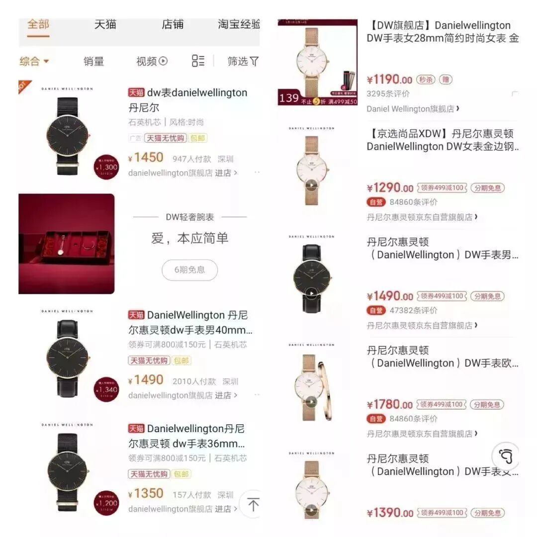 DW 也一样,再看下,这是电商网站DW的售价 通通1000+