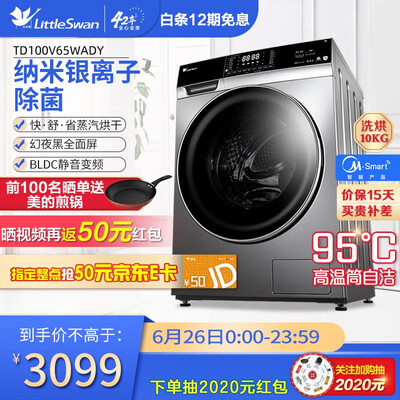 商品名称:小天鹅(LittleSwan)TD100V65WADY; 商品编号:66822453093; 店铺: ; 商品毛重:74.0kg; 能效等级:一级能效; 特色推荐:洗烘一体; 产品类型:洗烘一体; 排水类型:上排水; 电机类型:变频(节能); 颜色:银色;