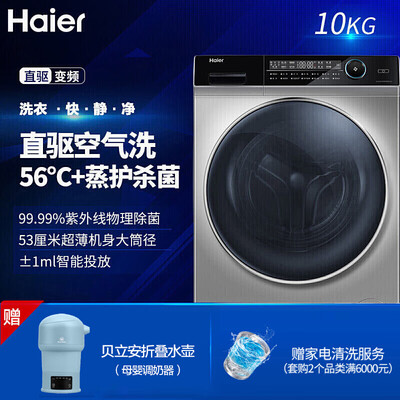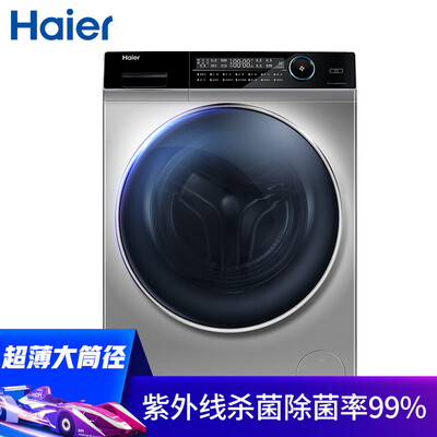 商品名称:海尔EG10014HBD809LSU1; 商品编号:100008961448; 商品毛重:88.0kg; 商品产地:中国大陆; 能效等级:一级能效; 特色推荐:滚筒洗衣机,洗烘一体,大容量洗衣机; 排水类型:上排水; 用户优选:京品洗衣机,高端洗衣机,新品洗衣机,除菌,延保服务; 宽度:55.1-60cm; 产品类型:洗烘一体; 高度:80.1-85cm; 洗涤容量:10-20kg; 颜色:银色; 电机类型:变频(节能); 深度:50.1-55cm;