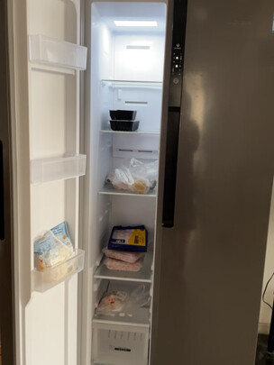 新飞BCD-450WK9ET外形外观:莫兰迪灰的面板很有高级感;制冷效果:制冷效果很好,功能比较强大,冰箱几乎没有噪音保鲜效果:保鲜室极大,可以放下很多东西容量大小:508升法式冰箱空间很大,尺寸与房子预留空间贴合,很棒