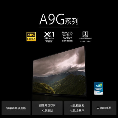 商品名称:索尼KD-65A9G; 商品编号:100003406915; 商品毛重:34.0kg; 商品产地:上海; 屏幕尺寸:65英寸; 能效等级:无能效等级; 分辨率:4k超高清(3840×2160); 电视类型:OLED,大屏,4K超清; 选购指数:10.0-8.0; 观看距离:3m-3.5m(56-65英寸);