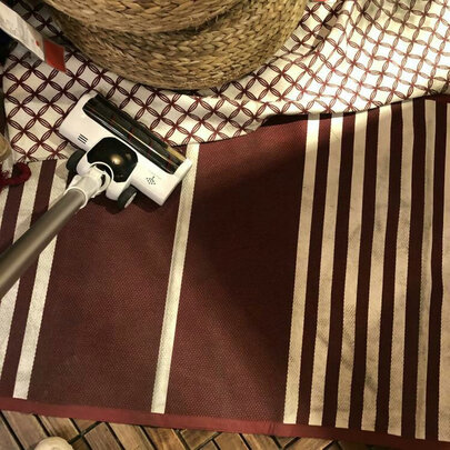 看了这款吸尘器很久了才下单。这款吸尘器非常美观小巧,易收纳,充电也很方便,质量很轻,很容易上手,卡扣的设计很精巧,使用时声音不大,吸力够大,地板吸头非常灵活,基本上什么都能吸了,家用足够了!怪不得销量这么大,个人感觉价廉物美值得推荐一个!
