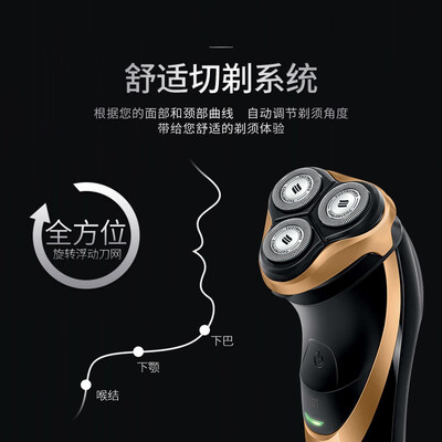 给儿子买的,孩子非常喜欢,外观漂亮、大气,黑色深沉,蓝色靓丽。功能如何,等用后追评。剃的还算干净,做工很好,声音不大。不知道这款抗摔能力强不强,还没摔过。宝贝已收到,高大上,颜色很是漂亮,非常喜欢,快递小哥很给力,隔日达,用了以后来追评刚收到货,包装精美,试了一下,手感很好,声音很小,喜欢!个人觉得两头的比三头的还舒服一点。这款浮动剃须很贴合。清洗也很方便。真的做工好啊,手感以及刮脸性能特别好,说实在的我也特别的喜欢的,正品值得信赖。
