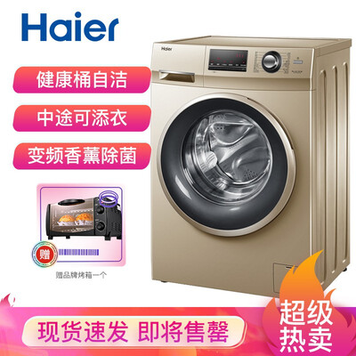 商品名称:海尔G100108B12G<br />商品编号:100008149561<br />商品毛重:76.0kg<br />商品产地:中国大陆<br />货号:G100108B12G<br />能效等级:一级能效<br />特色推荐:滚筒洗衣机,大容量洗衣机<br />排水类型:上排水<br />产品渠道:线下同款<br />用户优选:京品洗衣机,高端洗衣机,新品洗衣机,除菌,租房神器<br />宽度:55.1-60cm<br />产品类型:滚筒<br />高度:80.1-85cm<br />洗涤容量:10-20kg<br />颜色:金色<br />电机类型:变频(节能)<br />深度:60cm以上<br />
