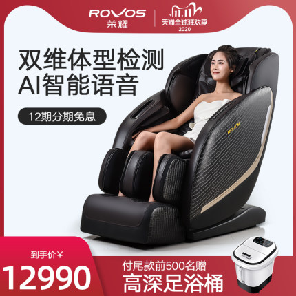 荣耀按摩椅E6820AI怎么样?谁用过评价?下面给大家带来这个热销款:Rovos/荣耀家用按摩椅全身全自动天猫精灵太空舱多功能电动6820AI,一起来看看这款荣耀按摩椅E6820AI入手使用体验感受、详细配置参数、价格及网友点评优缺点详情,希望可以帮到需要的朋友选择这款荣耀按摩椅E6820AI时作为参考。