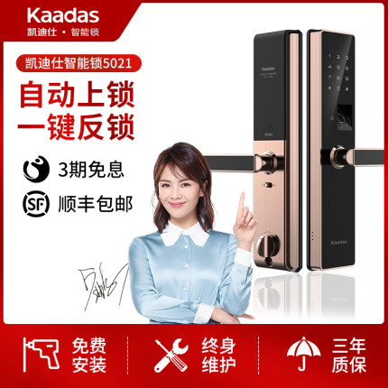 凯迪仕智能指纹锁5021怎么样?谁用过评价?实际上这款【新品首发】凯迪仕智能锁5021指纹锁家用防盗门锁电子门锁密码锁做工很细腻,样式很不错,性价比蛮高的,然后也是他们的经典款,款式多小巧精致的,讲真心话这款凯迪仕智能指纹锁5021的确蛮可以的哈,卓越的设计造型,质感蛮不错的,我好几个朋友已经用上了,我自己也是才购不久的,款式是我喜欢的,外形外观:外观简约大方,看来看去最终还是决定这种半自动门把手式的,毕竟家里还是追求稳定。灵敏程度:感觉识别率还是可以的,反应速度也很快。功能设计:wifi 直连很方便。就算app内功能不多,可设置的很有限。材质工艺:摸上去材质很舒服,下压的阻尼质感也很好。相对于价格,十分超值!!另外安装也很方便,大哥特别好沟通。