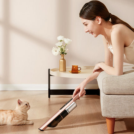 配色造型都很时尚,很合年轻人的胃口。使用起来噪音不是很大,风力有档位可以调节,因为主要是吸猫毛和灰尘,所以我基本只用最低档,吸尘效果还是可以的,换成送的小刷头拎着吸尘可能会有点重。整体效果还是相当满意的。[玫瑰][玫瑰][玫瑰] 特别好用,看起来很高大上,家里养猫,床上,地毯好多毛,买之前担心床上静电猫毛吸不起来,外观材质:外观时尚美观,金属柄很喜欢,一学就会,设计的非常人性化,操作起来非常简洁方便,噪音控制:噪音真的小,猫猫就在旁边好奇地看着也不害怕 再也不用怕头发满地了 很实用 ????性价比高 吸的特别干净容量足够家庭使用。真心是好东西。物美价廉属于简易款,吸力比较大 吸力很大几档可调节,有过滤,空气不会二次污染,充电器小小的,整体不占地方[啤酒][啤酒][啤酒]产品质量:再也不用趴在地上捡头发了,好开心呀,去朋友家玩的时候看到的这一款,没有用做也挺担心,到货还挺好的,这个吸尘器连很小的角落都能吸尘,头发啊宠物毛都能吸掉,而且外观很好看,居家必备我感觉,特别是白天工作特别劳累的人很有必 要入手一个 我有一个,用得好再介紹朋友买,这是第二部,真的比正品靜音,而且砂石及毛髪也能吸,经济实惠,值得推介。
