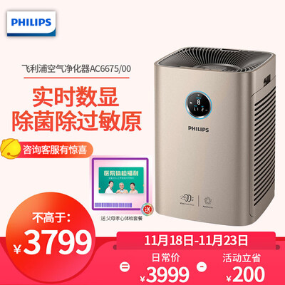 商品名称:飞利浦(PHILIPS)AC6675/00<br />商品编号:52838042941<br />商品毛重:13.58kg<br />货号:AC6675/00<br />产品功能:除甲醛,除颗粒物,除过敏原,指数显示,智能控制(wifi)<br />产品类别:家用型<br />适用人群:过敏人群<br />
