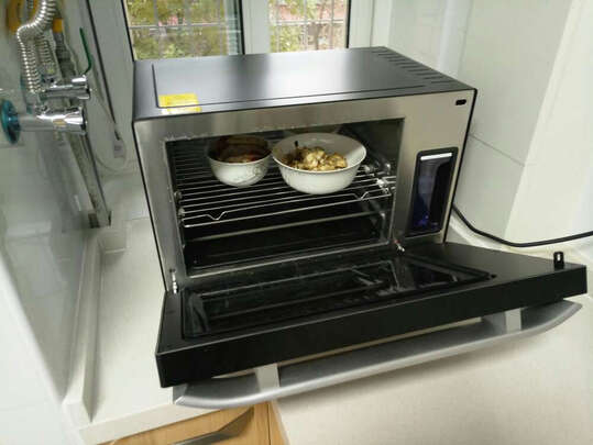 蒸烤箱我看了很久,各个牌子比较了一番,终于决定买了这款,幸好结果没有让我失望。这是一个不错的蒸箱,买回来试验蒸过番薯,急冻虾饺蒸20分钟,急冻凤爪蒸30分钟,鱼是按照食谱做的大概有一斤半重,杂粮馒头是自制的,蒸了15分钟,还有荷叶糯米冬菇鸡,蒸了30-40分钟三个人份量的;蒸蛋也试过,蒸出来很滑很嫩,忘记拍了;它的确是一个很好的蒸箱,之前的考虑是多余了。而且里面不锈钢的,也很方便清洁,空间也很充足,可以同时分两层一块蒸。不过,烘烤模式的,还待研究一下,后期如果研究了蛋糕面包再追加评论。这是第一次那么认真评论,是因为想提供给跟我初始一样,纠结买哪款蒸烤箱的人做参考。对了这款蒸烤箱唯一让我觉得遗憾的,没有定时预约的功能。