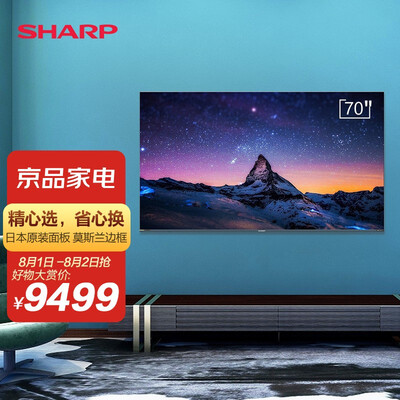 1、SHARP70X7Plus电视收到安装好了,品牌的东西就是好,画面清晰,声音立体,特别好,听歌也很不错,坐在家里看电视像在电影院的效果一样,本以为电视会不会买大了,安上之后感觉大小正好,音质不错,画面清晰。电视收到了物流很快,电视很好看价格也实惠,安装简单。喜欢的可以下手。