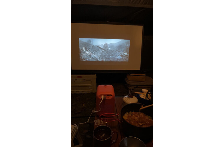 投影亮度:亮度关灯后可以接受,插上充电线会更亮一些