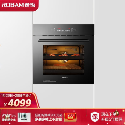 商品名称:老板R073电烤箱; 商品编号:6116339; 商品毛重:45.0kg; 商品产地:中国大陆; 货号:10R07301; 操控方式:触控式; 安装方式:嵌入式; 发热管材质:不锈钢管; 内胆材质:黑色搪瓷; 产品容积:40-80L; 类别:嵌入式烤箱; 产品渠道:线上专供;