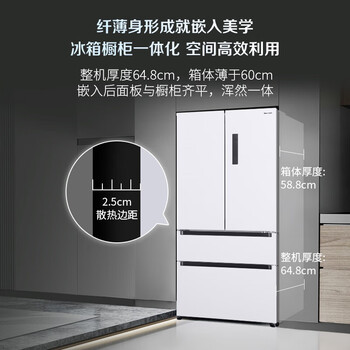 唯一符合家里放冰箱位置尺寸的冰箱,严丝合缝,非常棒!颜值在线,虽然超薄,感觉容量也不小,布局也比较合理,制冷挺快的,压缩器在顶上不占地儿