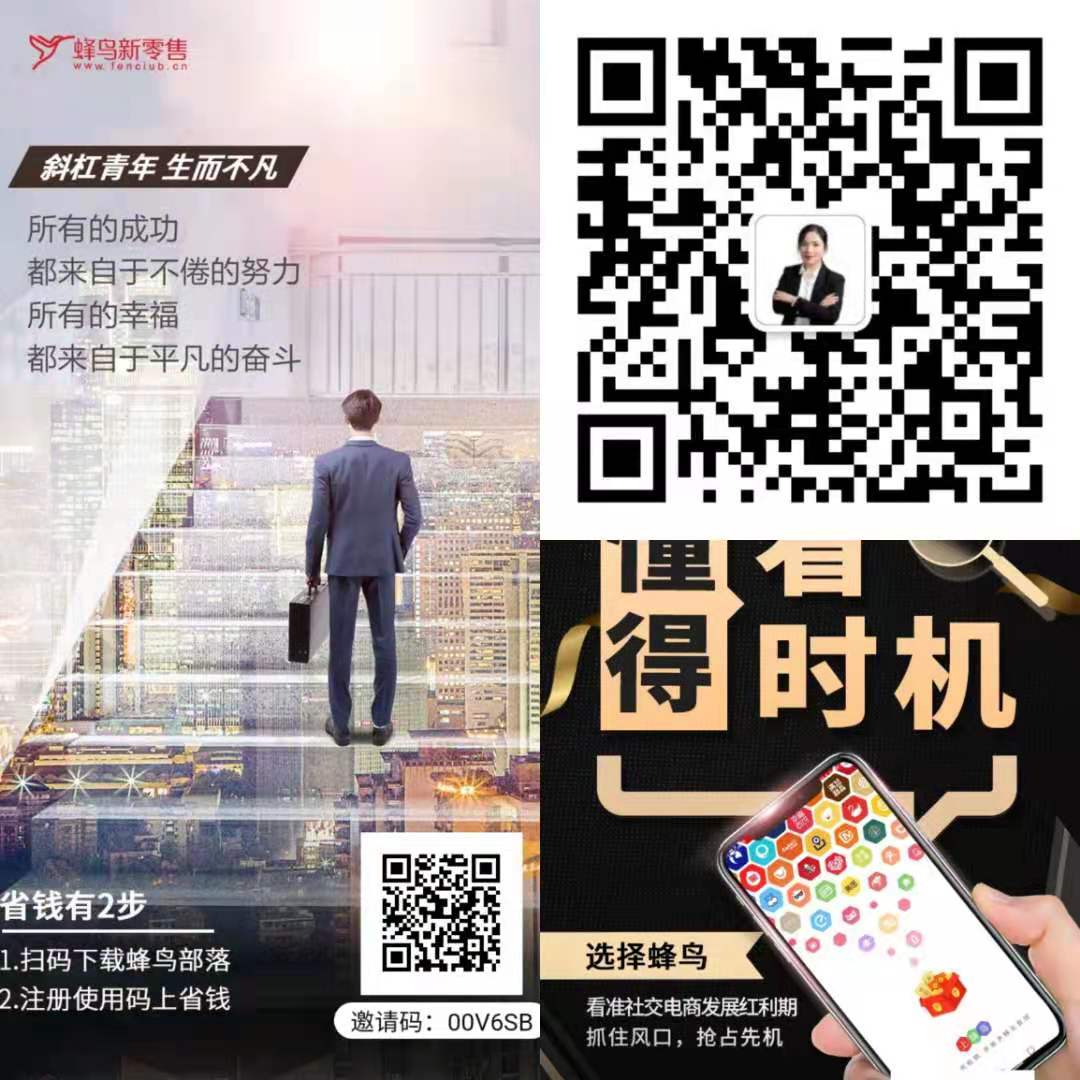 你目前月薪多少❓ 你有存款吗❓ 失去工作你能维持生活多久❓ 每月工资还了花呗,就是月光光所剩无几❓ 如果你是上班族,想一边领工资一边赚副业收入吗❓ 如果你是全职宝妈,你想在家带娃也能赚钱养家吗❓ 如果你是实体店主,除了店铺收益还能让你开一家全球网店,你愿意吗❓ 副业刚需时代,你需要一份“斜杠收入”,成为一位“斜杠青年”。据《2019职场人年中盘点报告显示》,有兼职的年轻人已经超过了8000万,约8.2%的人拥有副业收入。 随着社交电商的兴起,一种轻创业模式成为主流。数据显示,2019年社交电商从业人员预计达4801万人,2020年社交电商市场规模将突破3万亿元,占整个互联网零售市场的三分之一。 按图片两秒扫描二维码输入下载码00V6SB再进入QQ浏览器点击直接下载软件,下载后设置一下,再绑定微信即可,有不懂的可以扫描右上角您的上级导师微信二维码获取新手教程,或咨询您的上级导师微信:13913472418 蜂鸟部落是一款覆盖衣食住行吃喝玩乐的会员制智能导购APP。 蜂鸟部落APP依托于淘宝、天猫、聚划算等平台,采用电商CPS+自营+品牌直供的模式,为会员提供美妆个护、居家日用、数码家电、食品生鲜、服饰鞋包、海淘尖货等上万种正品货源,帮助会员买到最具性价比的网购商品,并提供上万种商品优惠券,一站式满足用户生活优惠所需。 蜂鸟的轻创业模式,不管你是谁,你都可以加入,拥有多重职业和多重身份的多元生活。网购、外卖、线下美食等数个线上线下领域,有消费的地方,你都能赚钱。你的专属邀请码:00V6SB 网购收益 加入你身边所有人购物车的每一件商品,你都赚一份推广费,这样的额外收益,心动吗? 蜂鸟部落链接淘宝、天猫等电商平台,除了领上万种商品的隐藏优惠券,网购更省钱外,还能赚最高90%的返佣。自用省钱,分享赚钱! 生活服务收益 你点外卖吗? 看电影吗?这些刚需消费,你也可以赚钱。 蜂鸟生活服务板块,覆盖外卖、娱乐等线上线下领域,都能让你赚到钱。让分享成为你生活的一部分。 比如,你分享外卖红包,朋友省钱,你赚佣金。比如你是餐馆老板,按每天100人进店消费计算,一年到店3万人,这往往都是一次性消费。加入蜂鸟部落,可以让你赚到这部分人往后所有的消费佣金,假设每人每年为你创造10元佣金,那么至少有30万额外收益,而这还只是一年。 专属店铺收益 如果你是蜂鸟部落VIP会员,还能开专属店铺,你的店与蜂鸟自营工厂,全球大牌工厂、品牌代工厂等直接合作,所有蜂鸟自营产品严格接受7优管控品质保证,帮粉丝买到全球优质源头好货。不用你发货打包售后,直接做“甩手掌柜”。 担心创业难? 直播、课程、社群、培训、素材库,蜂鸟部落正在不断实现技术全面赋能,一键开店,甩手掌柜。目前蜂鸟部落已经帮助千万斜杠青年实现有钱有闲的生活,花的更少,省的更多,赚的还要多。 加入蜂鸟部落, 跟一群简单、快乐、充满爱的小伙伴 一起开启你的副业之路!你的专属邀请码:00V6SB |