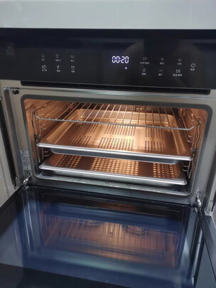 颜值爆表!珐琅内胆和托盘!太后悔没有早点买这款,直播间看到它一见钟情!送了三个托盘和隔热手套,强迫症的我为它配了同色系隔热手套!有了它把蒸锅,空气炸锅,微波炉和之前的烤箱全部丢掉了,腾出不少空间。功能简直太强大了,烤鸡翅真正外焦里嫩,一下烤三层,温度均匀。蒸大包子更完美,不会像蒸锅那样出现滴水现象。炸薯条外酥里嫩。集十八班武艺于一身,厨房小白秒变大厨。有了它简直太开心了,想吃什么都能用它来做,整鸡整鱼,可以使用蒸烤多段模式,肉再厚也能熟透,外面还焦脆,最重要的还有预约功能,手机一键启动,早上起床就可以吃饭现成的美味!功能太多了,继续解锁中,姐妹们放心入,美食走起!