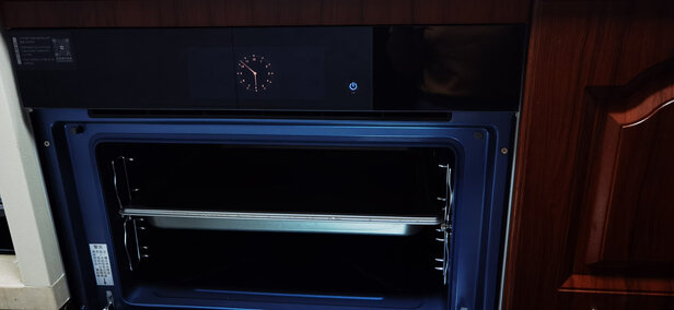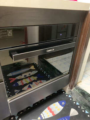 此用户未填写评价内容首先包装很用心,见过的最厚的纸箱,每一个可能会因运输颠簸而移动的位置都做了很好的防护,防止移动和刮擦,比如拉门、加热管、水盒。包装内带了质量很好的橘色隔热手套、说明书、智能菜单书、两种带不沾涂层的隔盘和一个竖条网隔。外观设计点赞,很简约时尚上档次,哑光漆的蓝色外观搭配黑色面板、大小一致的圆角方块触摸按键、免拉手的下翻玻璃门、按键的布局都很漂亮,拉下拉门就能看到几十个智能菜单。做工用料很棒。接缝处缝隙较小。能看得出来内胆是等级很高的纯不锈钢,很容易清理。双层褐色的玻璃很大气,最大限度的做到了可视和隔热。操作简便,操作逻辑清晰。长按??暂停按键开机-选**能-设定温度时间-再按??暂停键开始工作。选中的按键会比其他按键更亮,但是其他未选中的按键也很亮,对比不是十分的明显,这点有改进空间。接水盒的卡槽可以设计得更容易插拔,卡槽靠里,往里装的时候需要摸索孔位在哪,不是十分快速。另外接水槽也比较浅,深度小了一点。缺点都无伤大雅,并不很影响使用体验。推荐同学们购买!