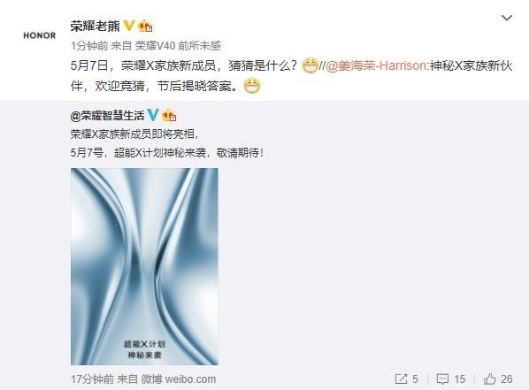 [杂谈] X20系列?荣耀X家族新成员即将亮相 5月7日揭晓 |