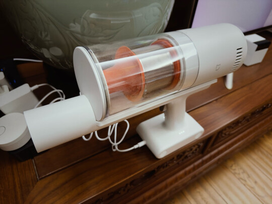 1.包装及送货:吸尘器和支架的包装都非常严实,很小的部件都用很厚的纸壳包裹,支架包装上还特意用了防撞海绵条,非常之用心。送货依旧给力。2.吸尘器:追觅这个品牌还是值得信赖的,专业团队专门研发吸尘器和吹风机,中国版戴森。吸尘器及配件齐全,标准的四菜一汤(四个吸头+主机)。还配备了延长软管,在清理狭窄的缝缝时,可以伸到很深,相当实用。主机+吸头安装简单。中档吸力清洁不错,男性用起来不是很费力。滚刷还是会缠绕一些长线头,四周也会粘点毛毛。吸尘和除螨都能吸出很多灰尘,看起来好慎人。尘杯在打开时灰尘会喷溅出来,我现在都直接伸到马桶里打开。过滤芯等部件可水洗。3.支架:钢管特别厚实,拿在手里沉甸甸的,给人一种结实放心的感觉。安装简单。4.续航及充电:中档吸力续航也还不错。电量用尽后,充电约三个多钟头方可满血复活。5.个人拙见:一是主机还是不轻的,女孩用起来会觉得沉一些,时间长手会酸。戴森也一样,手持吸尘器通病吧。二是主机放到支架充电时,不会有一个卡到底充上电的手感或声音提示,如果有卡壳一下会更有感觉的。三是拆滤芯时需要拧下带追觅商标的上盖,如果有个标识,示意锁上or打开,就更方便了。