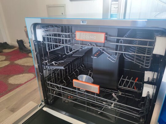 关注了这个蒸烤箱半年多了。双11搞活动立马就买了。态度相当的好,问题都会耐心地解决,还没有使用,准备这周回家用用看。满意家里面尺寸受限,还想要的大容量的,看了很多家,还是觉得老板的这款洗碗机最合适了,安装师傅很专业的给我们进行了改造和安装,安装完后非常合适,而且这款还是紫外线消毒的,家里面有宝宝,我用着也放心,我家里5口人一顿饭的餐具放进去绰绰有余,经常还放不满呢,大品牌的服务和产品确实不错。COLMOCDS15G33外形外观:外观很大气,白色很好看,表面光泽非常好,易清洁,大小非常好,550宽,适合柜子不大的人家,现在这个尺寸不多了。清洁能力:清洗了一次,非常干净,还有紫外杀菌,非常好,太省事了。物流速度:速度非常快,晚上下单,第二天上午就到了。噪音程度:在厨房,这个声音可以,类似滚筒洗衣机,有时还比滚筒洗衣机声音小。洗涤容量:8套,6个人足够了。