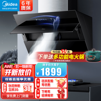 颜值很高,吸力也很大,满足开放式厨房的要求~智能操控很方便,避免油污弄脏机器。性价比很高,还带自清洁功能。