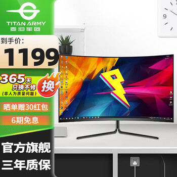 【曝光】泰坦军团32C1UF显示器好吗?泰坦军团32C1UF优缺点点评外形外观:外形简单粗暴 看的顺眼 没有那么多花里胡哨尺寸大小:23.8刚刚好 对我这个业余游戏爱好者 妥妥的足够游戏效果:刚测试了一下 是真爽 把我那60的彻底抛弃刷新率:刷新率响应真快 对FPS游戏爱好者来说 真是福音显色效果:清晰 清晰 清晰还行吧,虽然面板没有特别好,问客服说是群创的q7b,听说q7b是不带背光的k7b,所以不知道这款显示器的背光怎么样,到手后感觉还可以,相比之前的k7E面板确实差了一点,不过价格还可以,做工也还行,日常使用要求不高的话,还算有性价比