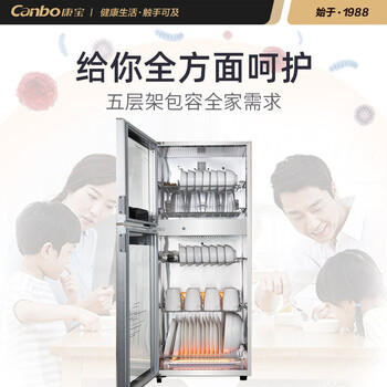 产品质量可信,外观设计简介大方,消毒效果良好,值得再次购买。送货速度非常快,物美价廉,里面共分三层,上层温度不内热的餐具。