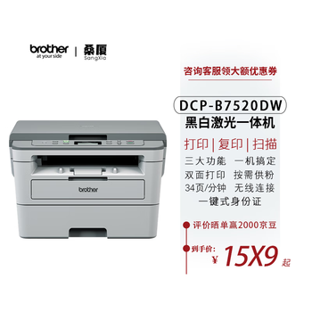 兄弟DCP-B7520DW打印机好吗?质量评测兄弟DCP-B7520DW打印机优缺点点评产品包装:包装很一般,只有官方的包装箱,JD现在抠门抠的连个塑料包装都没有给,以至于运送途中出现了磕碰!外形外观:方正,不算占地方。打印速度:官方宣称20-28/分,孩子自己打印作业卷子之类的,没那么大的需求,不好说。打印效果:感觉很不错。操作难易:这一点就做得很好,傻瓜式操作,连上网下个智慧生活APP就可以使用。其他特色:价格坚挺,品牌溢价过高。外观漂亮、简约,重量也适中,安装的话说明书指引很清晰,用手机app跟着指示一步步设置就行,加墨水也很方便。可以手机app连接,也可以USB连电脑,连电脑需要安装驱动,官网上下载即可,不然打印会是乱码。打印效果也不错。