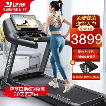 亿健A10跑步机测评怎么样?质量评测亿健A10跑步机口碑如何?产品材质:钢材质感很棒,造型简约大方,收纳起来也很方便,一个人就能收纳,跑台的宽度也比较合适,很适合在家里空闲的时候运动运动,噪音可以接受,如果配合上下面的垫子感觉应该会更好,最主要使用穿戴里面的课程很多,跟着课程自动调度很省事,比较满意。實物尺寸有点大,宽度到了900mm,长度不变,地方有限本来就不想買太大的,这个不适合小家庭,即80平以下房子,系统流暢度一般,内置爱奇艺,qq音乐和一个瀏览器,没有可自行安装的方式,用户管理当第一次不登入后到现在我还是没有方法能重新管理,只是不停说密码不对但跟本没设密码,可能要重置,图二的问题不影响運作但是十分难看,我们在健身房用的跑步机並没有看到这些瑕疵,回覆卻说成是一定有一样,说的静音也不是很静,机械本身没声音,但是你在走步或跑时產生的声音不算低,跟来的隔音毯子是4个4x80cm左右的正方形,有点小家