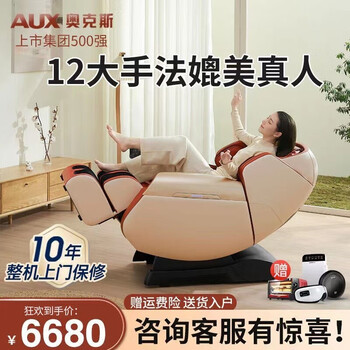 奥克斯T200语音升级版按摩椅好不好?真相爆料奥克斯T200语音升级版按摩椅值得买吗?这一款按摩椅非常好,然后当时是搞活动买的,大约是2000多米。其实我还没有用呢,是给父母买的,然后我妹妹在家安装的,她觉得还不错,希望一切都好对了,这一款会送一个扫地机器人啊,一定要联系客服,等到收到货以后然后再来领取。买了近一个月才来评价,基本上这一个月每隔一天就按摩一次,基本上一直用全自动模式,有5种自动模式,不同模式按摩功能不一样,每次按摩完以后很舒服,尤其是脖子位置,就像真人按摩一样,效果非常好。而且送货上门,不用安装,插电即用