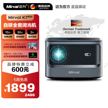 【爆料】MirvalK7 投影仪值得买吗?MirvalK7 口碑如何?比较了很多投影仪,最终选择了这款,三色激光、4k HDR、3D、memc;都是我想要的,音响效果不错。最关键的是亮度,完全出乎我意料的好,不关窗帘效果都很好,如视频所摄。另外说明一下,没有大白墙,我是在米黄色墙纸上投的,能有这个效果很满意。期待用幕布后的效果。H6总体而言在目前4款4k投影仪中算是性价比最好的。先前买过某信的全色激光投影仪,色彩很好,但散斑现象太重,在短距离(3米内)全是散色点,无法观看,恰好发布H6 4k版,果断预订。这款H6其最大优点是;可以光学变焦,自动对焦,即便有晃动也会自动调节。并且亮度足够高,白天即使不关闭窗帘,灯光,亮度也足够正常观影,清晰度绝对ok,比我以前买的1080p 清晰太多,色彩在同类产品中也是很出众的,操作系统流畅,噪音是出乎意料的小,基本听不到。内存足够大,不会因为下载多软件就变得卡顿,非常流畅。该款的曼哈卡顿音响也是非常的出众,双音响加持,看电影的时候真的非常震撼。低音浑厚。另外单独买了匹配的麦克风,麦克风的自动混音太给力了。哈哈哈。优点的同时也存在一个小问题:大家在安装的时候如果方便的话还是吊装,那样可以多角度调节,如果正装的话最好搭配桌面支架,也是可以调节角度的,不然投影的高低度调节不了的。瑕不掩瑜,总体来说,这款H6 就价格来说,画质、音响效果、而言绝对值得购买,是观影神器!