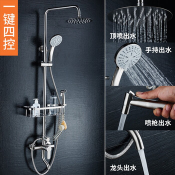 功能特别多,四出水模式,手持花洒四种出水模式,按键式切换,带过滤棉,还送了一个,大顶喷也很舒服,还有价格300多块钱,要啥自行车呀,最后再赞一个送货速度,家里大花洒坏了,凌晨一点下单,下午五点送到家,安装好,没耽误晚上洗澡