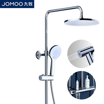 非常符合家里的装修风格,这个淋浴花洒的功能特别多,又有花洒又有水龙头,还有置物架,可手持,还有挂式,功能齐全,吹爆!安装方便,简约又好看,设计合理,且很牢固,调节温度也非常方便,不会出现过冷和过热的情况。