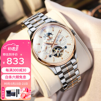 戴着很舒服,作为入门的自动机械太喜欢了,没事就喜欢盯着镂空部分看(°3°)精准程度:戴了一周了,秒针一点也不差,很棒外观外形:钛钢色很好搭配衣服