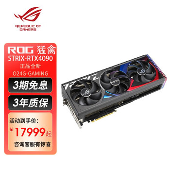 ROG ROG-STRIX-GeForce RTX 4090显卡入手测评,ROG ROG-STRIX-GeForce RTX 4090怎么样?包装保护:保护挺好的,厚重的泡沫游戏效果:3060网上评测挺多,我也不评了,本来买来也不是打游戏的,给公司财务配的电脑cpu没有核显,做个亮机卡评分检测:懒得跑测试散热性能:相信魔龙散热不会差,也不会用到全部的性能,无所谓外形外观:挺好看拿到手以为发了一个ikbc的键盘,很大的箱子,里面填充物很多不会晃动,包装不错。拆盒和之前的显卡比,小了一点但厚实了些,装机一次点亮,一切没问题,没有光污染。跑cod16快了很多,配合165hz显示器很不错。plus-50加优惠,还有三期免息,真是美滋滋。